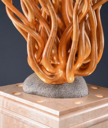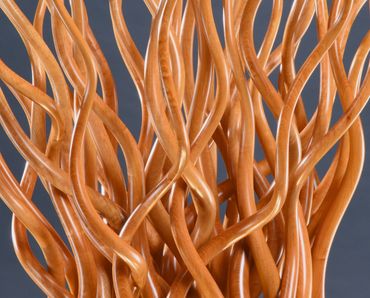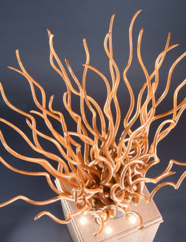 It was only after I had successfully created half a dozen arms that I began to realize the potential for intertwining them. From there I was off and running. I started on the interior and worked my way out. The more arms I made, the more I learned - the more circus tricks I was able to make the arms perform. No two arms are the same. Each was designed for its' particular position and desired tricks. There are 40 arms.